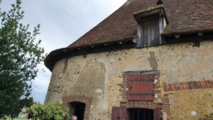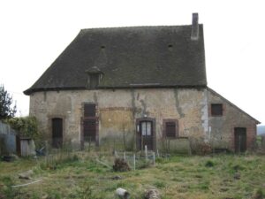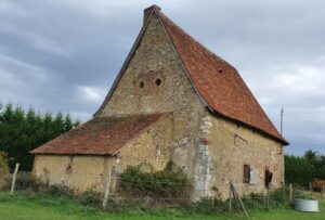 Ce bâtiment en long est dominé par une charpente de grande ampleur. Une double panne faîtière contreventée en assure la robustesse. Trop fort ne manque pas dit-on, ce dispositif fut nécessité par ses dimensions qui procurent aux combles un volume conséquent. Il est difficile de situer l’époque de construction car les ouvertures que nous voyons ont été créées vraisemblablement au XIXe siècle. Linteaux, jambages et appuis sont en briques d’un format assez récent. Il reste que le jambage de la deuxième porte est fait de pierres de fer et d’une pierre calcaire. Ces éléments pourraient être ce qui reste des structures d’origine.