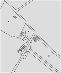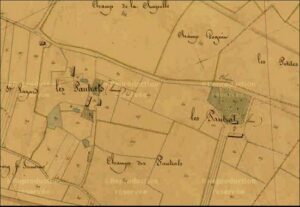 La chapelle qui figure sur le plan suivant du début du XIXe siècle est devenue une maison d’habitation on y a bâti un « toîton », il a été adossé au pignon Ouest où se trouvait l’entrée de ce lieu de culte.