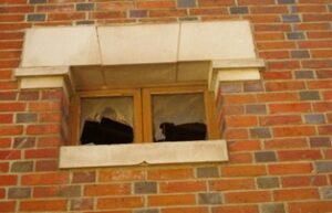 Linteau, jambages en grès ferrugineux la porte fait partie du mur dont la maçonnerie en moellons a été fragilisée par un mortier bâtard à base de ciment gris qui se détache de son support …