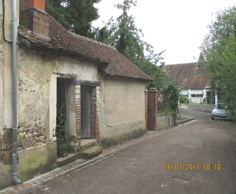 La porte donne accès à un jardin qui est longé et délimité par le Bourdon, sur ce jardin s’élèvent la grange en pan de bois, brique et pierre de taille et la maison du 6 rue Sébastien jobin qui fait l’objet d’une demande de démolition.