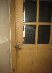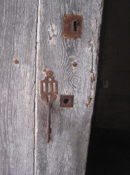 Porte de placard à fiches lardées et ferrées dans le dormant et dans le battant.