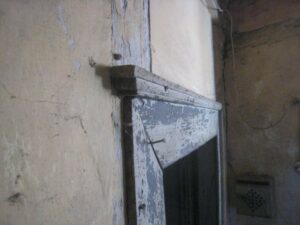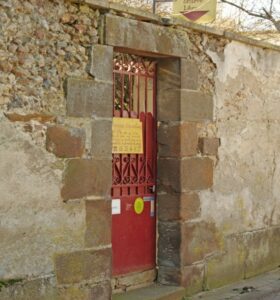 Linteau, jambages en grès ferrugineux la porte fait partie du mur dont la maçonnerie en moellons a été fragilisée par un mortier bâtard à base de ciment gris qui se détache de son support …