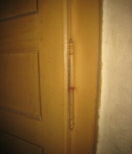 Porte de placard à fiches lardées et ferrées dans le dormant et dans le battant.