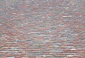 La tuile plate, posée à pureau brouillé, ancienne est ici un exemple d’harmonie, chaque élément est différent des autres, la couleur, la forme et les dimensions varient à l’infini, l’ensemble échappe à l’uniformité.