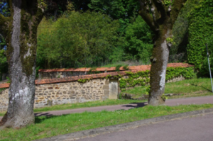 Ce mur d’enceinte, mur de jardin avec sa porte sur rue. Il est couvert par de la tuile mécanique, Montchanin-Losangée. Cette tuile fait son apparition au milieu du XIXe siècle.