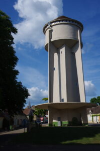 A Saint-Fargeau, à la ferme Des Pautrats, le château d’eau est en (beau) béton armé.