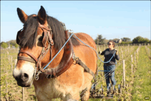 En viticulture, bien que la Puisaye-Forterre ne soit pas un territoire viticole majeur, les expériences menées en Bourgogne voisine, notamment en Saône-et-Loire, démontrent la pertinence du cheval pour le travail de la vigne. Le désherbage mécanique au plus près des ceps, le labour, le buttage ou encore le transport des récoltes sont autant d’opérations où le cheval excelle.
